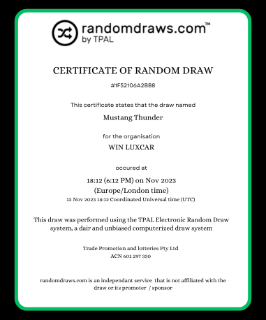 Utilise la dernière technologie pour sélectionner des gagnants aléatoires pour votre tirage au sort, conformément à la réglementation. Cela signifie que vous pouvez être sûr que votre tirage au sort sera impartial et digne de confiance.